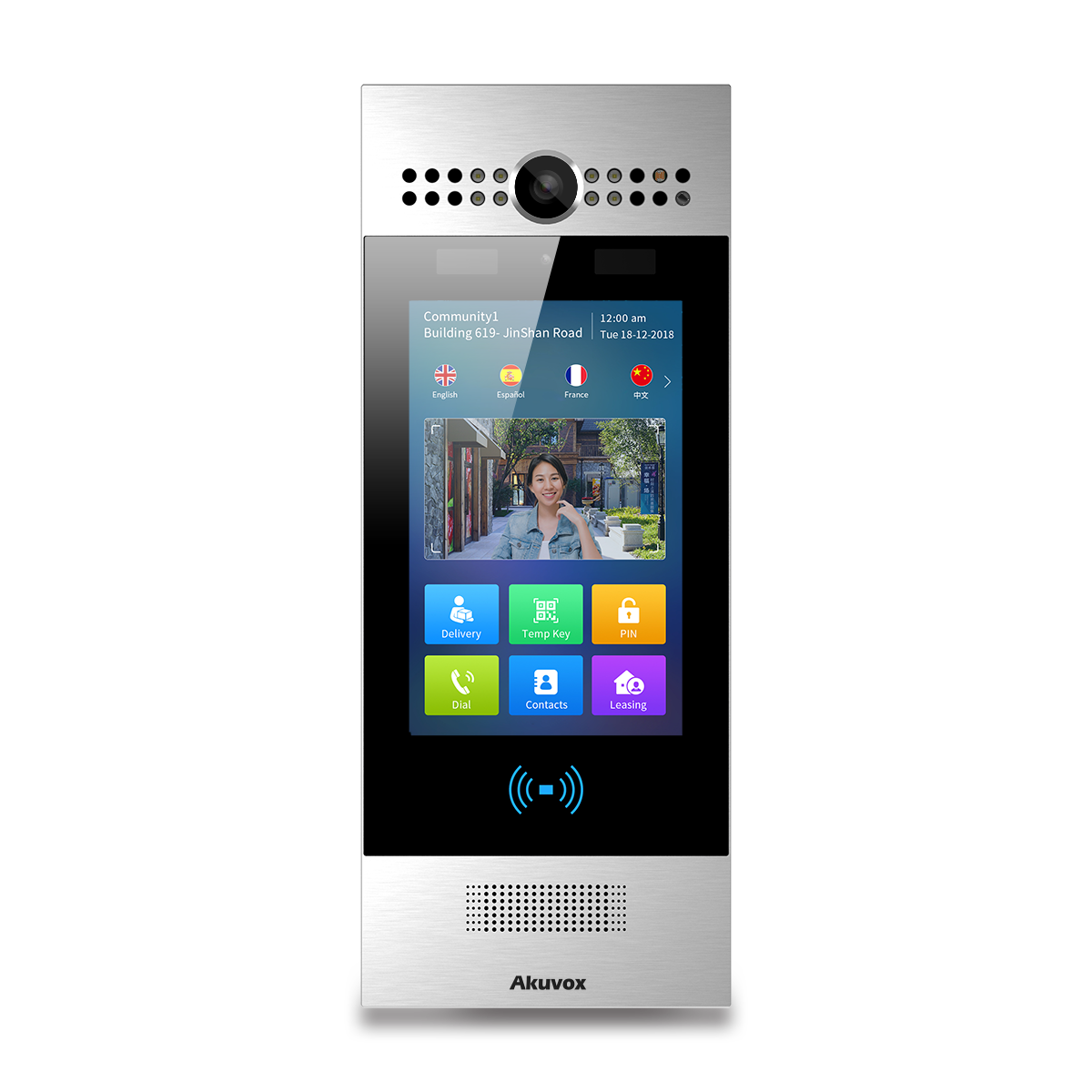 • 7吋IPS全彩觸控顯示屏 • 鋁合金面板 • 一個120°視角300萬像素紅外線相機和一個100萬像素輔助相機 • 防水等級IP65,撞擊等級IK06 • 開鎖方式支援門禁卡(13.56MHz 和 125kHz) 、NFC、密碼、DTMF、藍牙、QR碼和人臉辨識 • 標準IEEE802.3at POE接入 • 標準SIP協定可輕鬆與SIP PBX整合 • 嵌入或壁掛方式安裝